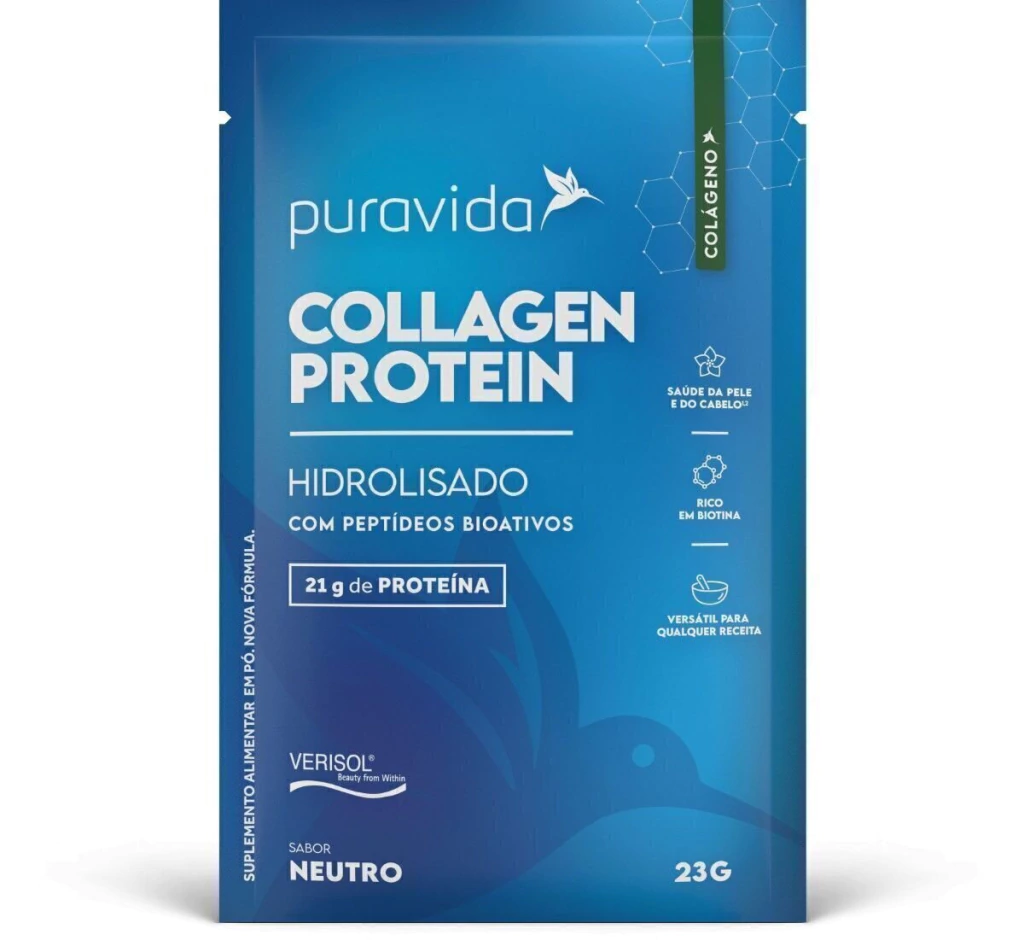 Ingredientes: Colágeno hidrolisado, peptídeos bioativos de colágeno hidrolisado com peso molecular médio de 2KDA (Verisol®), d-biotina (vitamina B7) e antiumectante dióxido de silício.
